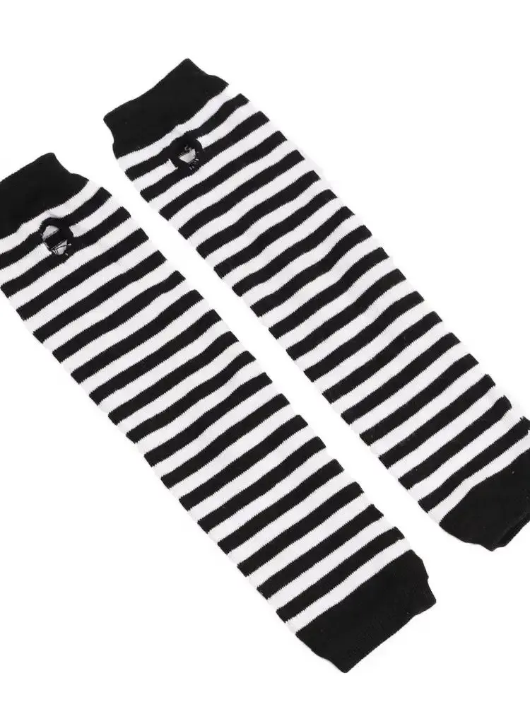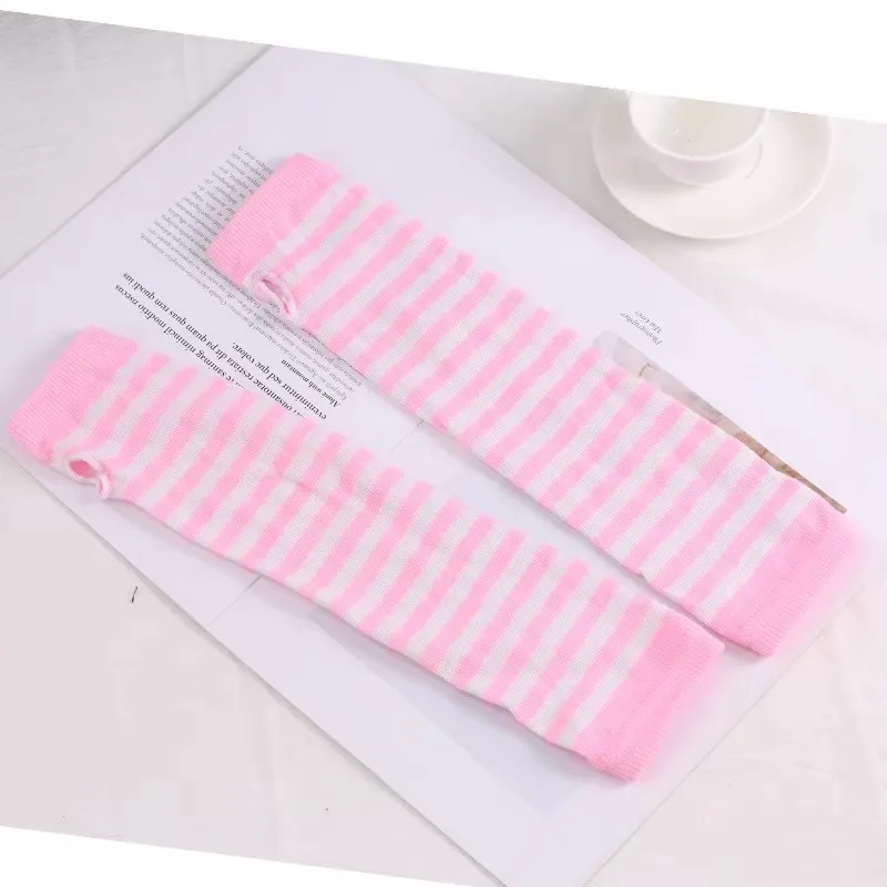 Punk Long Sleeves Fingerless Gloves Cuff for Women Men Stripe Hip-Hop Knitted Elbow Mittens Elastic Winter Arm Warmer Outdoor