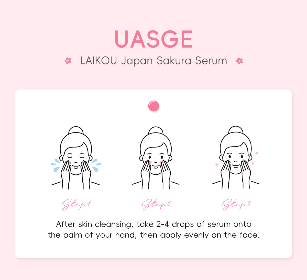SERUM: Take 2-4 crops of serum onto the palm of your hand , then apply evenly on the face