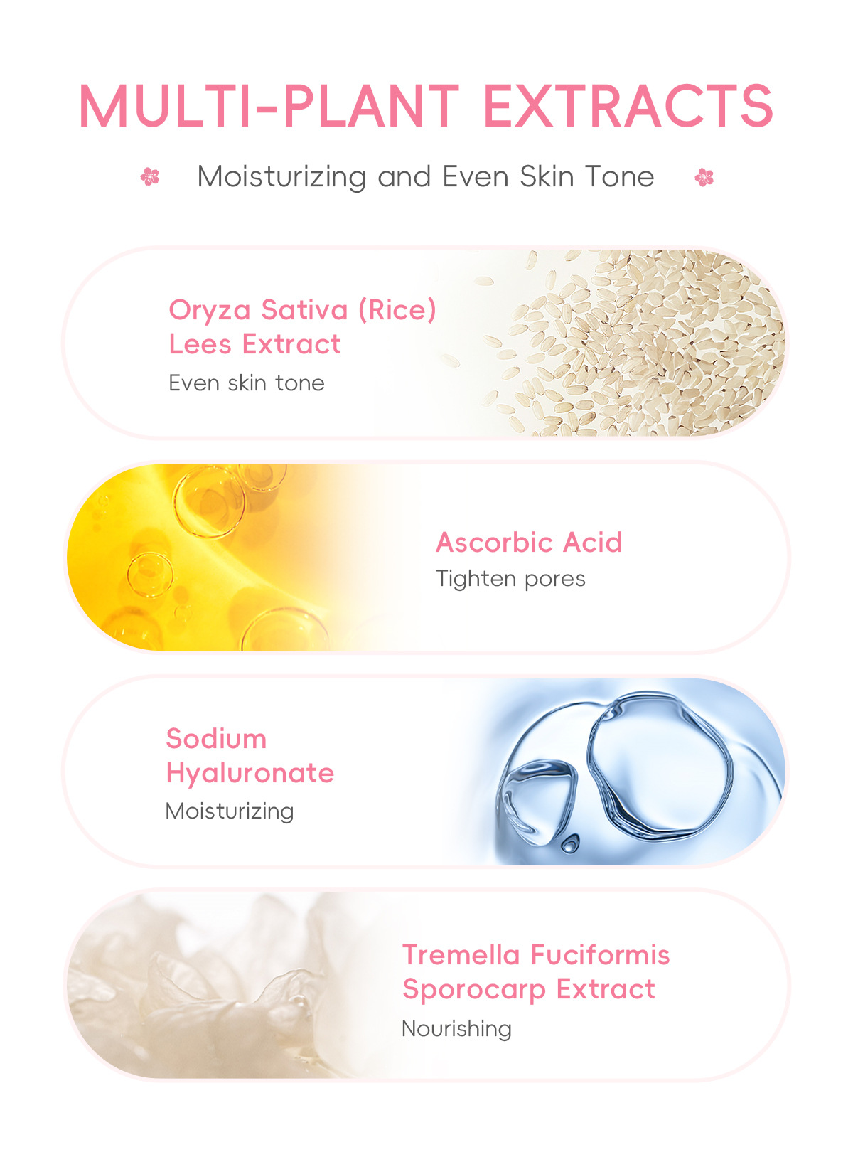lt contains Sakura Active Extract, which can reduce pigmentation and skin dullness. Rich in vitamin A,B and E, it can also balance oil secretion and shrink pores.